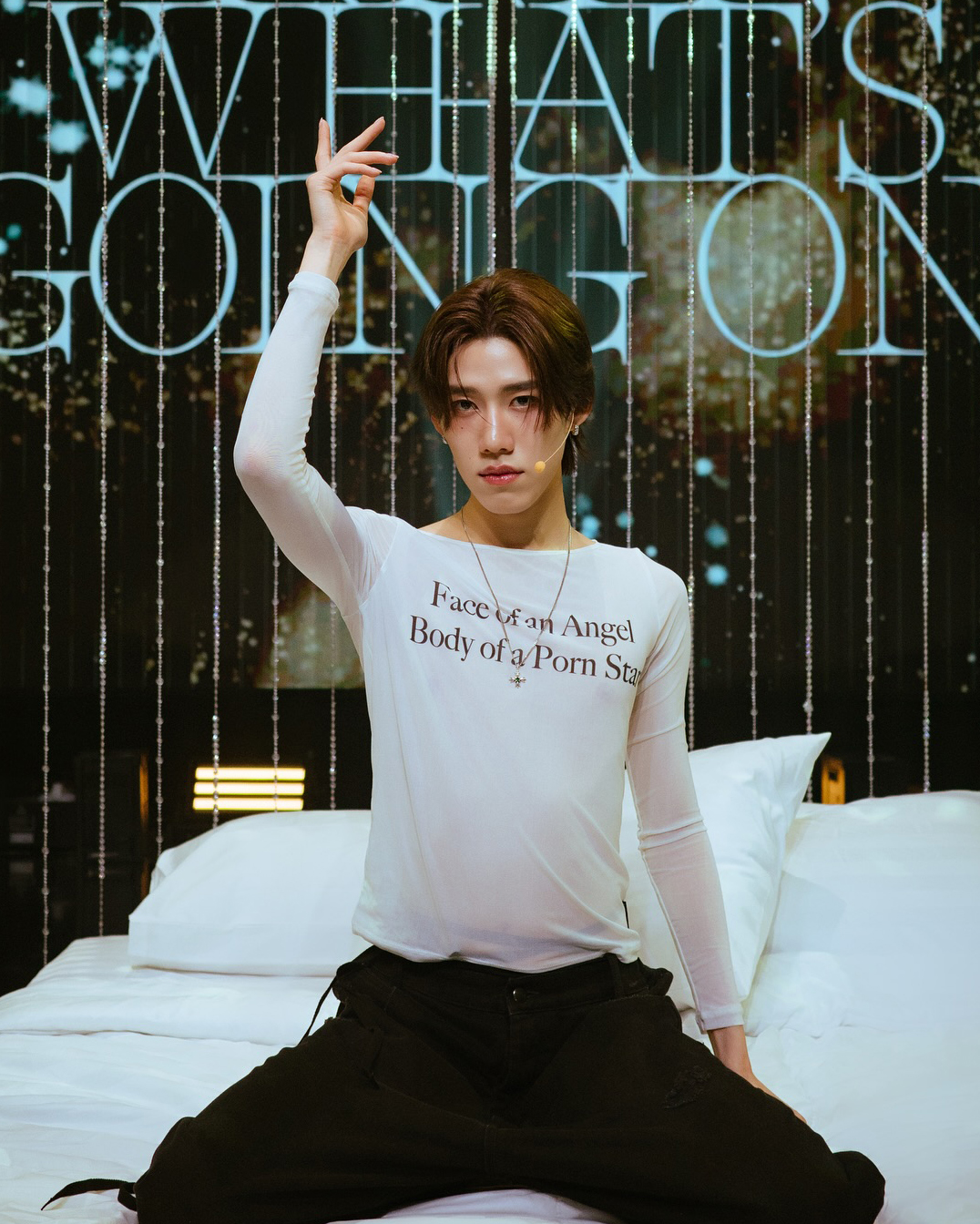 PP Krit wearing Emanuele Bicocchi green CREST + CRYSTAL NECKLACE while performing his new single "What’s Going On" at Thailand Music Countdown.