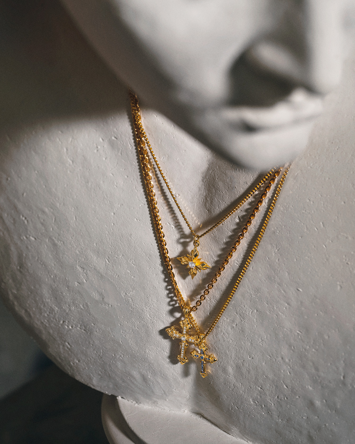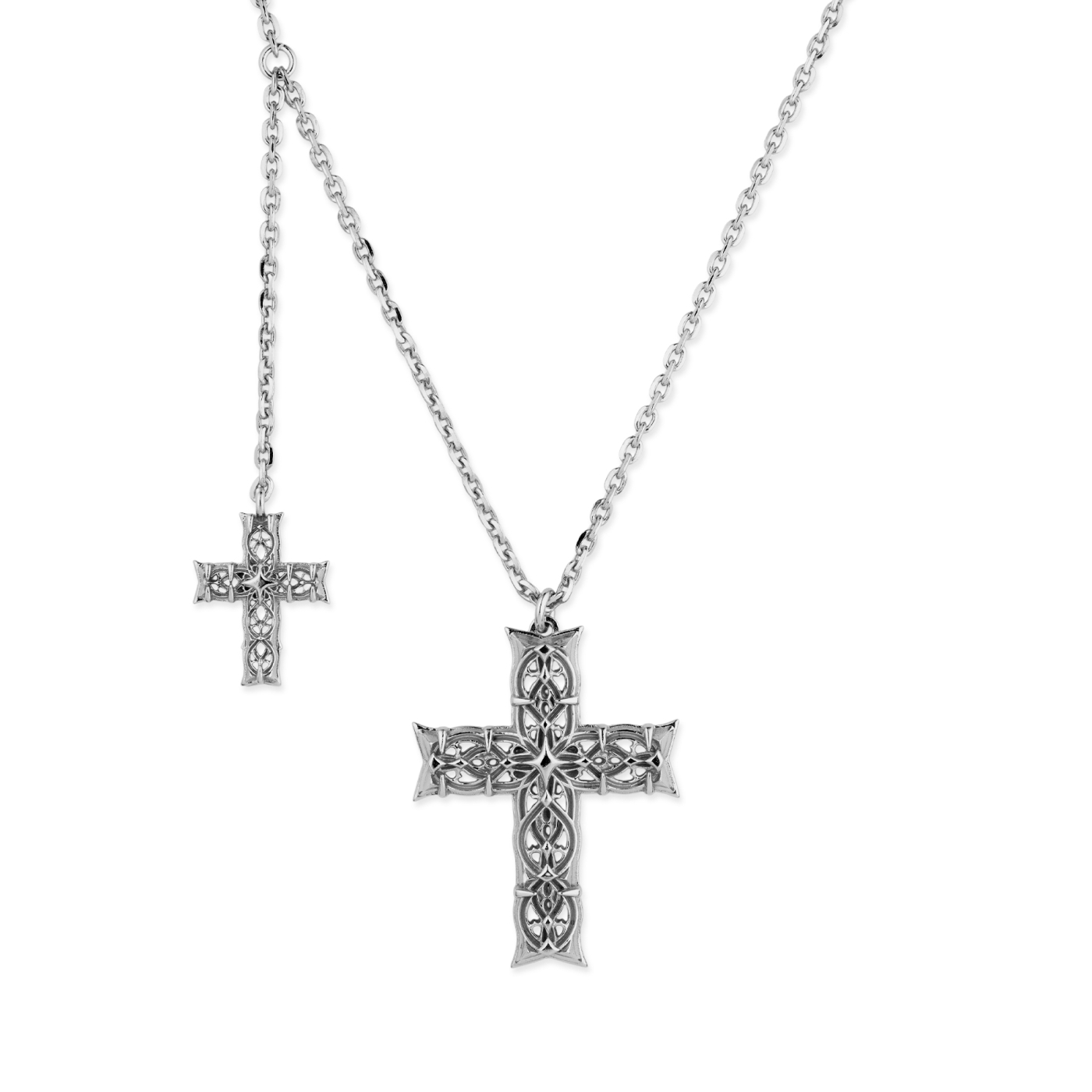 LA CROCE È UN SIMBOLO CHE RITORNA CICLICAMENTE NEI TREND DELLA MODA. PER EMANUELE BICOCCHI RAPPRESENTA UN ELEMENTO DISTINTIVO, PARTE DEL DNA DEL BRAND SIN DAGLI ESORDI. SCEGLI LA TUA CROCE PREFERITA DA REGALARE: NOTRE DAME, TORNATA PROTAGONISTA CON UNA NUOVA VERSIONE DAL DESIGN DECISO; FLEURY, CON IL SUO CARATTERE ROMANTICO; O AVELLI, DALL’ANIMO GOTICO E VERO BEST SELLER DEL BRAND.