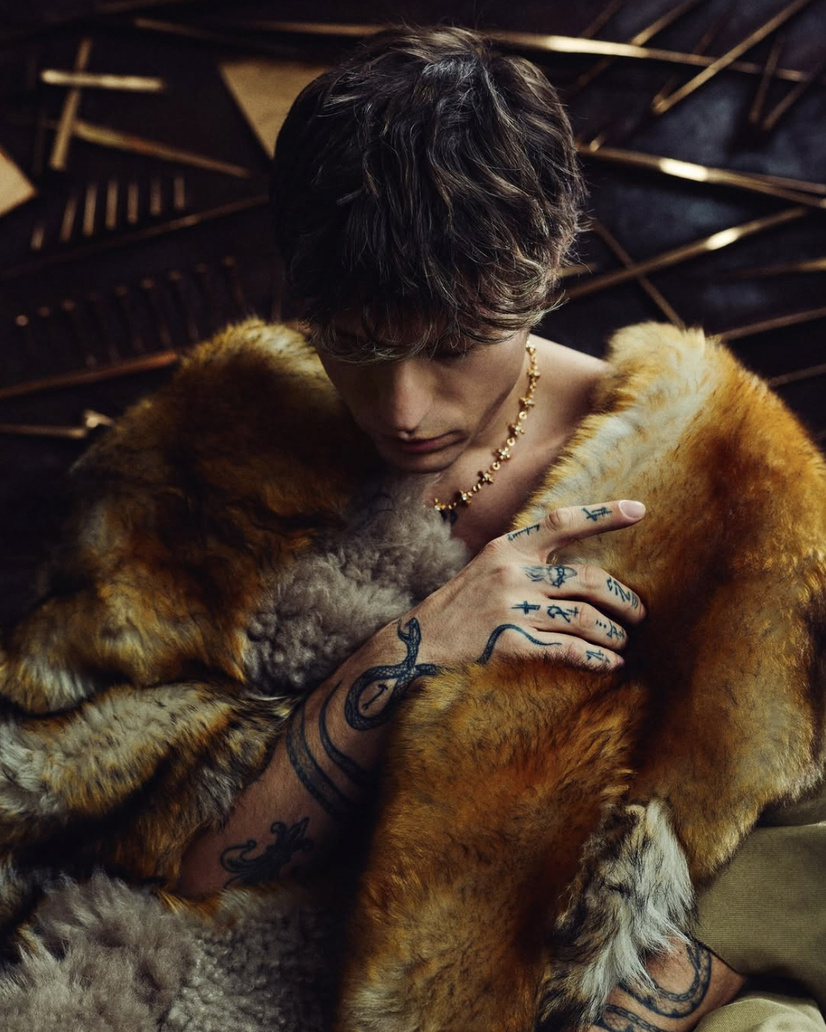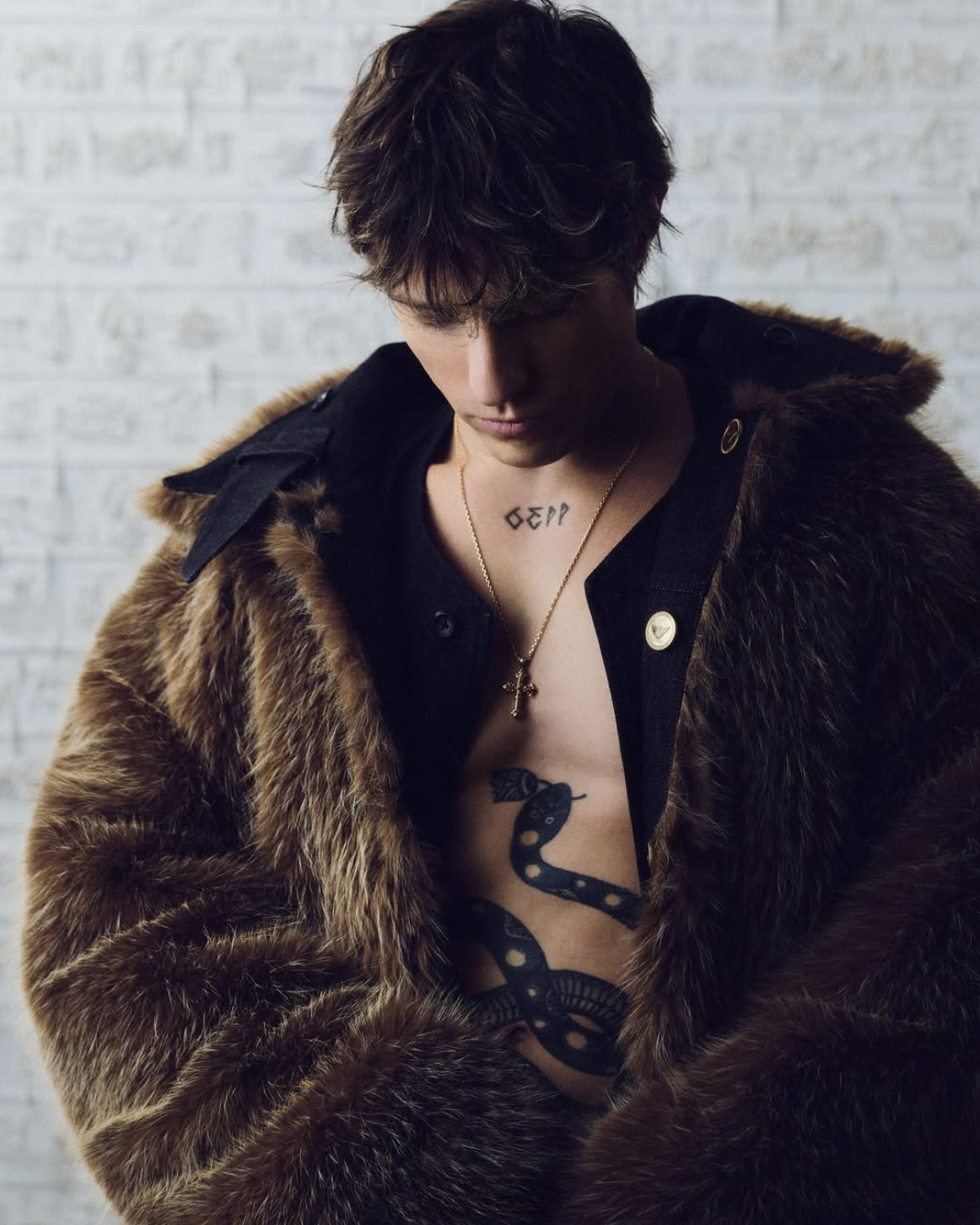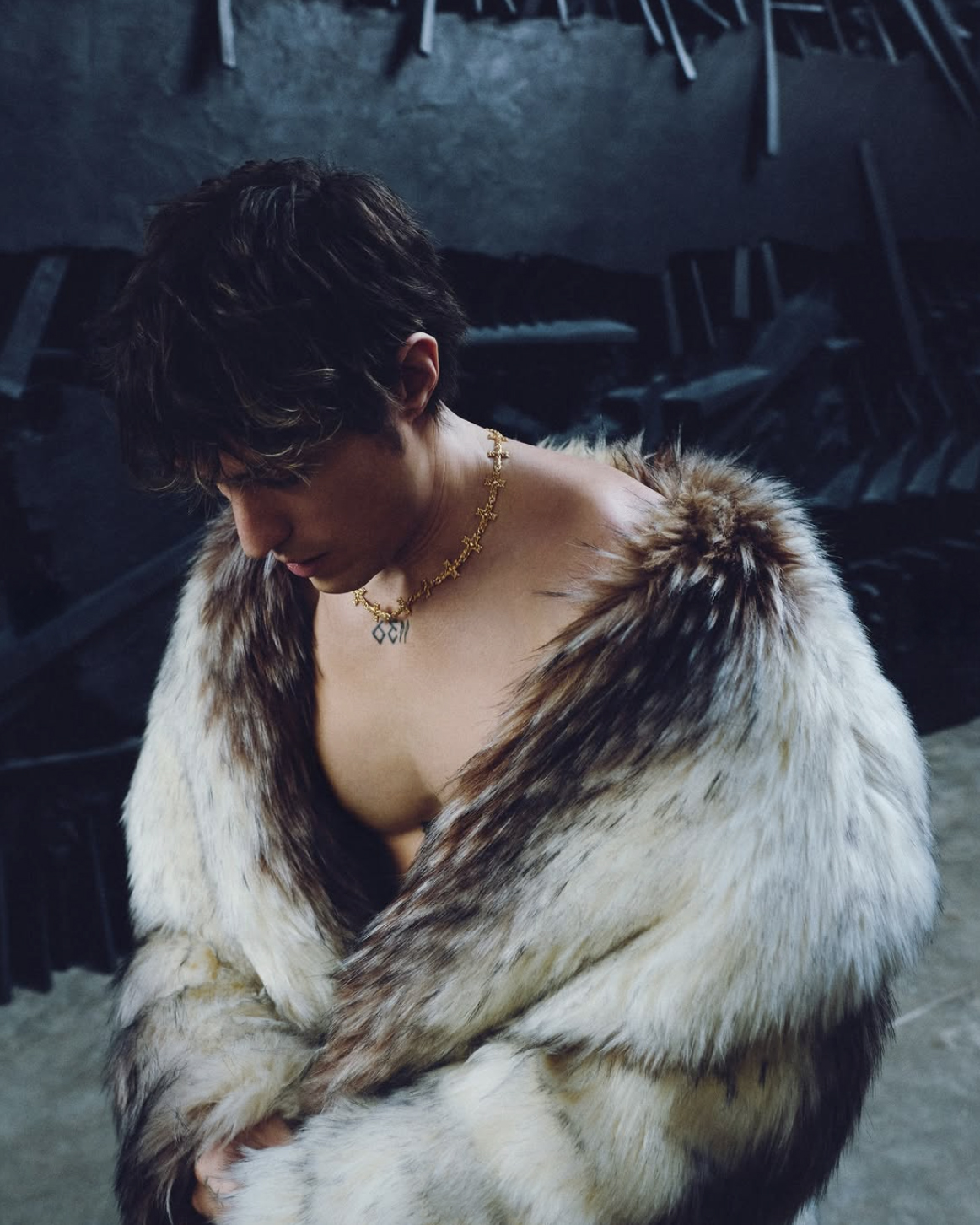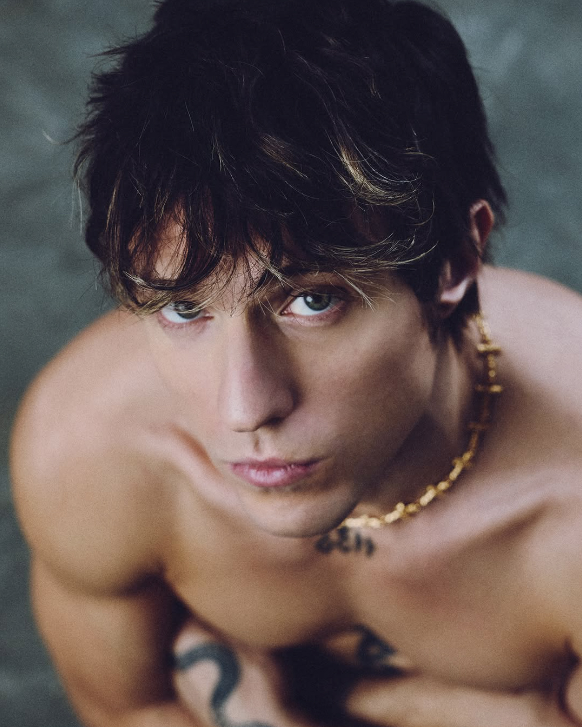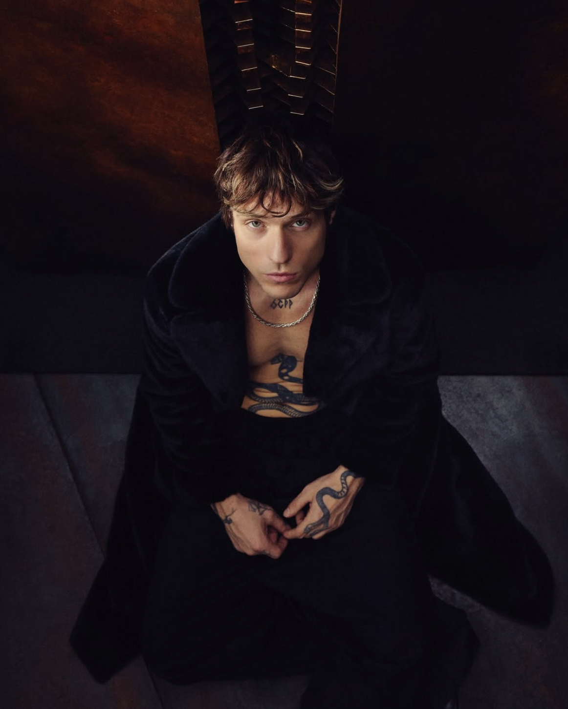 Irama wears Emanuele Bicocchi jewelry for The Collector Magazine digital cover story. Featured pieces include EB SS26 necklaces and the Emerald Avelli Cross Necklace from the Emanuele Bicocchi x Pisa 1940 collection.